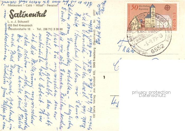 73725007 alte Postkarte Bad Kreuznach Hotel Salinental Cafe Restaurant postalisch gelaufen Erhaltung siehe scans [FriedD77] KatCode: 11110007133006