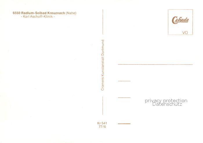 73008385 Bad Kreuznach Karl Aschoff Klinik postalisch nicht gelaufen Erhaltung siehe scans [WerneD78] KatCode: 11110007133006