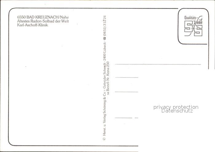 72510933 Bad Kreuznach Karl Aschoff Klinik postalisch nicht gelaufen Erhaltung siehe scans KatCode: 11110007133006