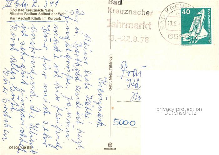 73109252 alte Postkarte Bad Kreuznach Karl Aschoff Klinik Kurpark postalisch gelaufen Erhaltung siehe scans [KathaD81] KatCode: 11110007133006
