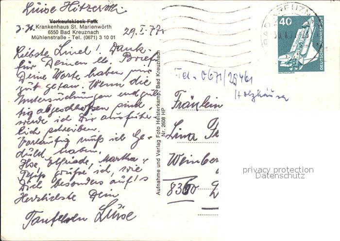 72427966 alte Postkarte Bad Kreuznach Krankenhaus St. Marienwoerth postalisch gelaufen Erhaltung siehe scans KatCode: 11110007133006
