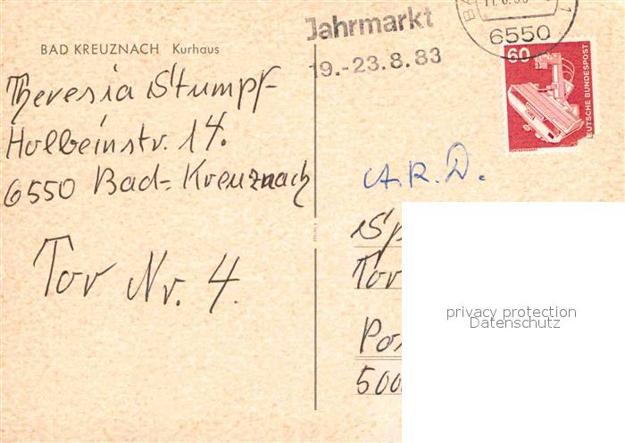 72746046 alte Postkarte Bad Kreuznach Kurhaus postalisch gelaufen Erhaltung siehe scans [FriedD77] KatCode: 11110007133006