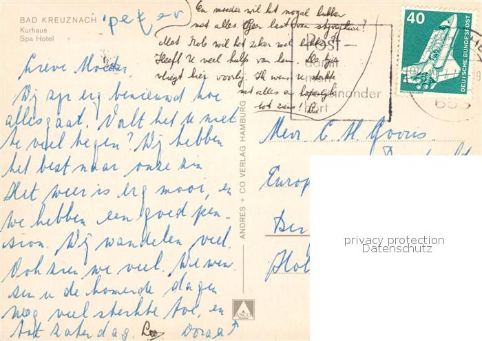 72971347 alte Postkarte Bad Kreuznach Kurhaus Spa Hotel postalisch gelaufen Erhaltung siehe scans [FriedD77] KatCode: 11110007133006