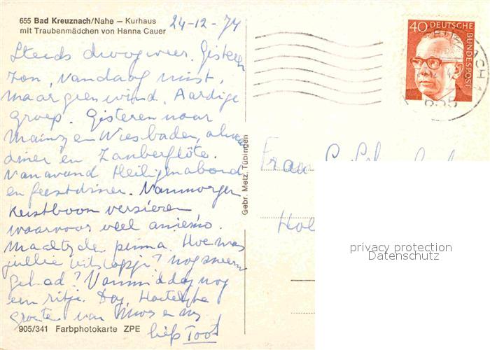 72906034 alte Postkarte Bad Kreuznach Kurhaus Traubenmaedchen postalisch gelaufen Erhaltung siehe scans [AndreD76] KatCode: 11110007133006
