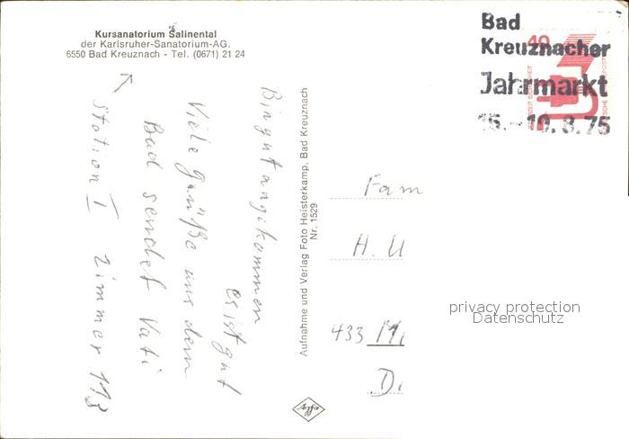 72077257 alte Postkarte Bad Kreuznach Kursanatorium Salinental postalisch gelaufen Erhaltung siehe scans KatCode: 11110007133006