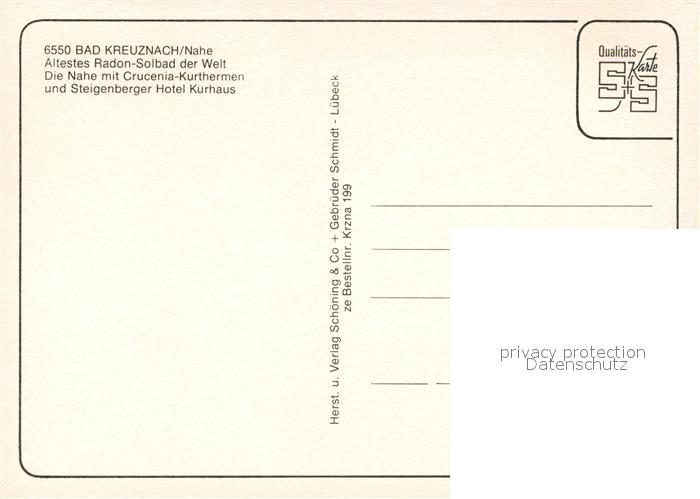 73606787 Bad Kreuznach ?ltestes Radon-Solbad der Welt Nahe mit Crucenia-Kurthermen und Steigenberge-Hotel Kurhaus postalisch nicht gelaufen Erhaltung siehe scans [LiesaD40] KatCode: 11110007133006