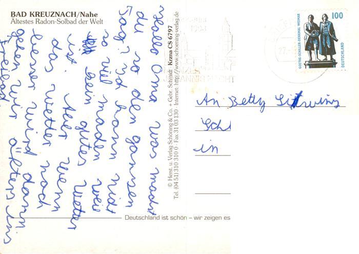 73903924 Bad Kreuznach Nahe Fliegeraufnahme postalisch gelaufen Erhaltung siehe scans [FriedD77] alte Postkarte Frie Katcode 11110007133006