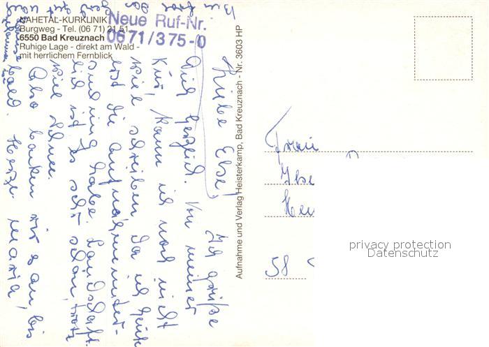 73312103 Bad Kreuznach Nahetal-Kurklinik postalisch nicht gelaufen Erhaltung siehe scans [NatalD47] KatCode: 11110007133006