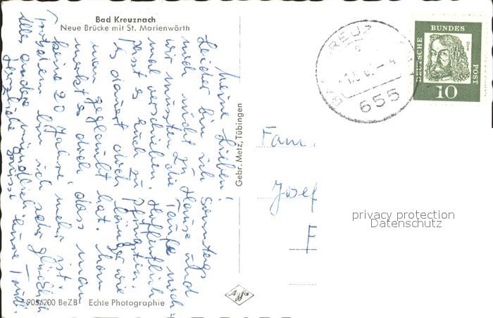 72144897 alte Postkarte Bad Kreuznach Neue Bruecke mit St. Marienwoerth postalisch gelaufen Erhaltung siehe scans KatCode: 11110007133006