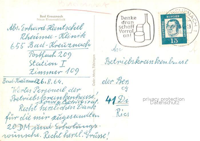 73678721 alte Postkarte Bad Kreuznach Neue Rheumaklinik Blumenbeet postalisch gelaufen Erhaltung siehe scans [FriedD77] KatCode: 11110007133006