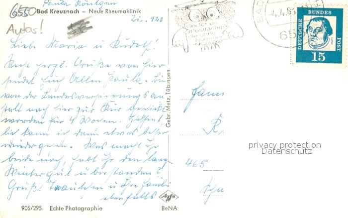 73691146 alte Postkarte Bad Kreuznach Neue Rheumaklinik Radium-Solbad Kurort postalisch gelaufen Erhaltung siehe scans [FriedD77] KatCode: 11110007133006