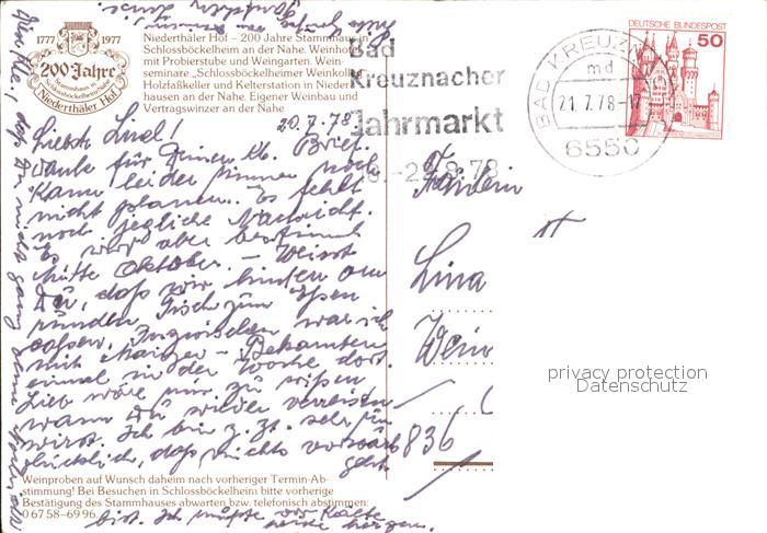 72427962 alte Postkarte Bad Kreuznach Niederthaeler Hof Restaurant postalisch gelaufen Erhaltung siehe scans KatCode: 11110007133006