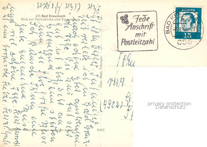 73295252 alte Postkarte Bad Kreuznach Paulskirche und Kauzenburg postalisch gelaufen Erhaltung siehe scans [WerneD78] KatCode: 11110007133006