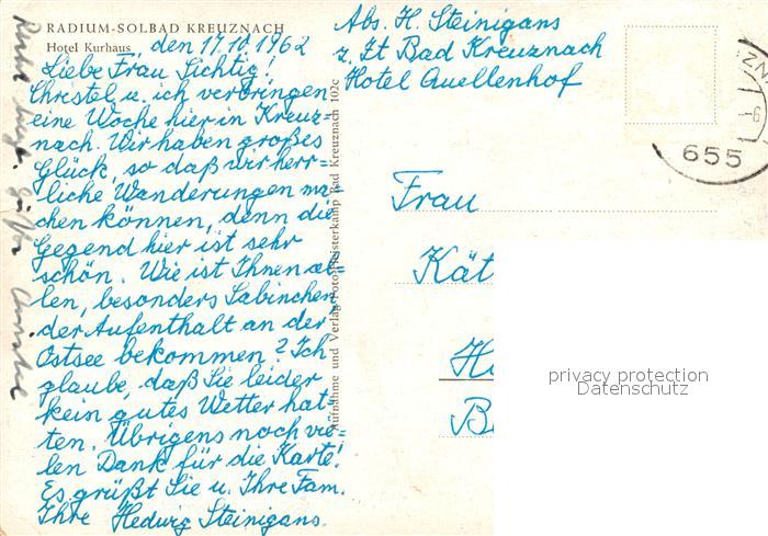 73634020 alte Postkarte Bad Kreuznach Radium Solbad Hotel Kurhaus postalisch gelaufen Erhaltung siehe scans [FriedD77] KatCode: 11110007133006