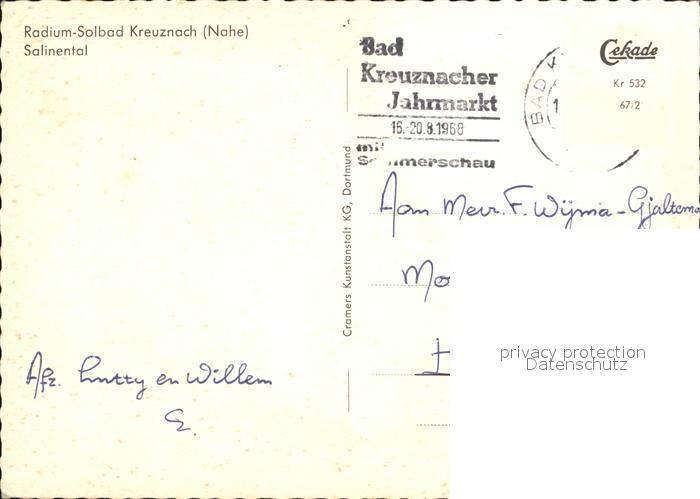 72421059 alte Postkarte Bad Kreuznach Radium Solbad Salinental postalisch gelaufen Erhaltung siehe scans KatCode: 11110007133006