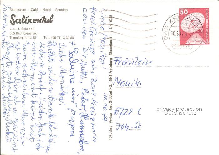 72230295 alte Postkarte Bad Kreuznach Restaurant Hotel Salinental postalisch gelaufen Erhaltung siehe scans KatCode: 11110007133006