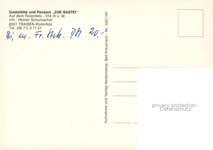 73056773 Bad Kreuznach Rotenfels Gaststaette Zur Bastei postalisch nicht gelaufen Erhaltung siehe scans [NatalD47] KatCode: 11110007133006