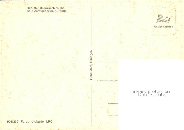 72510943 Bad Kreuznach Sole Zerstaeuber im Kurpark postalisch nicht gelaufen Erhaltung siehe scans KatCode: 11110007133006