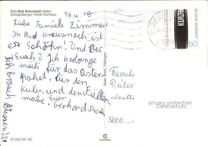 72511565 alte Postkarte Bad Kreuznach Steigenberger Hotel Kurhaus postalisch gelaufen Erhaltung siehe scans KatCode: 11110007133006