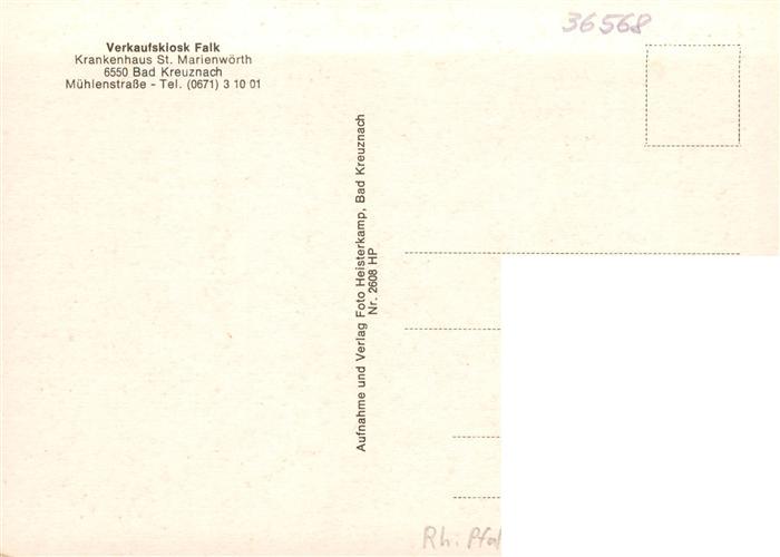 73887731 Bad Kreuznach Verkaufskiosk Falk Krankenhaus St Mariawoerth postalisch nicht gelaufen Erhaltung siehe scans [WerneD78] KatCode: 11110007133006