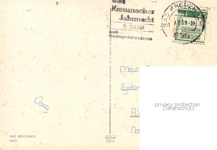 73308143 alte Postkarte Bad Kreuznach Wehr Bruecke postalisch gelaufen Erhaltung siehe scans [LiesaD40] KatCode: 11110007133006