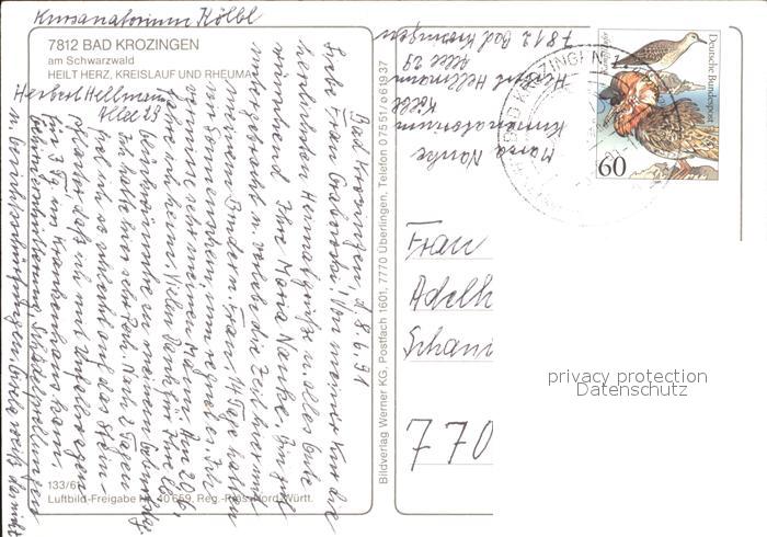 72241794 alte Postkarte Bad Krozingen Belchen Fliegeraufnahme postalisch gelaufen Erhaltung siehe scans KatCode: 11110008315006
