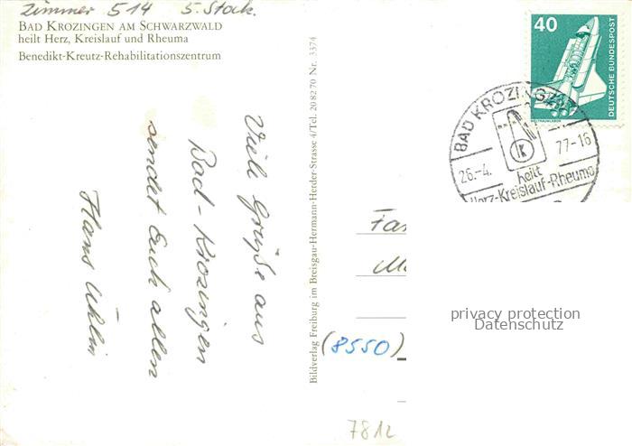 74039786 alte Postkarte BAD KROZINGEN Benedikt-Kreutz-Rehabilitationszentrum Kurort Schwarzwald postalisch gelaufen Erhaltung siehe scans [FriedD77] KatCode: 11110008315006