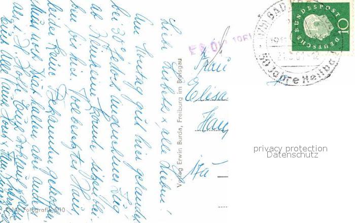 72813742 alte Postkarte Bad Krozingen Evangelische Kirche Trinkhalle Hauptstrasse Katholische Kirche postalisch gelaufen Erhaltung siehe scans [AndreD76] KatCode: 11110008315006