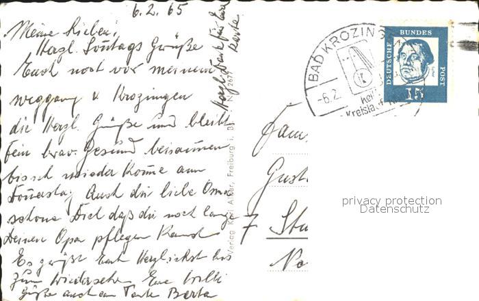 71925734 alte Postkarte Bad Krozingen Evangelische Kirche postalisch gelaufen Erhaltung siehe scans KatCode: 11110008315006