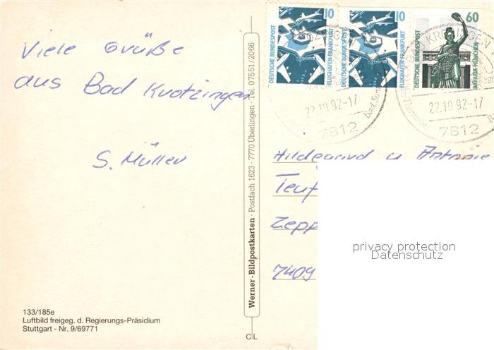 72989623 alte Postkarte Bad Krozingen Fliegeraufnahme postalisch gelaufen Erhaltung siehe scans [WerneD78] KatCode: 11110008315006