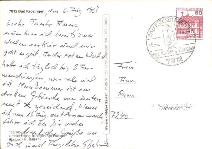 alte Postkarte Bad Krozingen Fliegeraufnahme postalisch gelaufen Erhaltung siehe scans