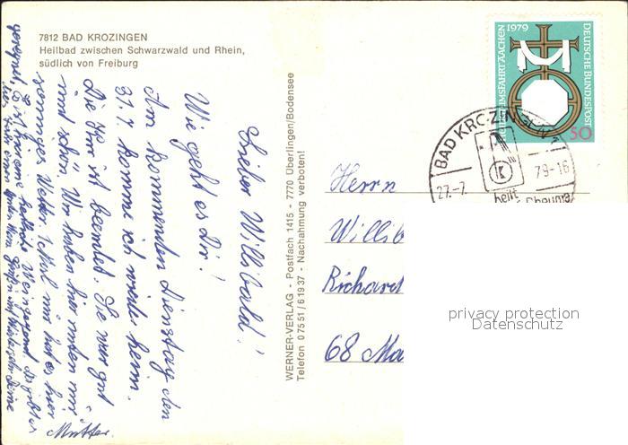 72114008 alte Postkarte Bad Krozingen Fliegeraufnahme postalisch gelaufen Erhaltung siehe scans KatCode: 11110008315006