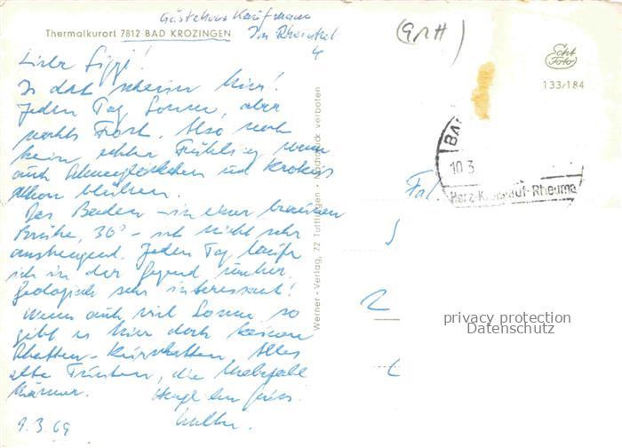 74141529 alte Postkarte BAD KROZINGEN Fliegeraufnahme postalisch gelaufen Erhaltung siehe scans [FriedD77] KatCode: 11110008315006