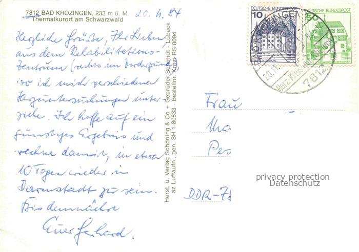74096903 alte Postkarte BAD KROZINGEN Fliegeraufnahme postalisch gelaufen Erhaltung siehe scans [WerneD78] KatCode: 11110008315006