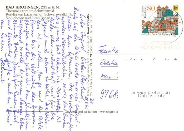 73087484 alte Postkarte Bad Krozingen Fliegeraufnahme Kurkliniken Lazariterhof Schwarzwaldklinik Sinnighofen Haus Baden postalisch gelaufen Erhaltung siehe scans [NatalD47] KatCode: 11110008315006
