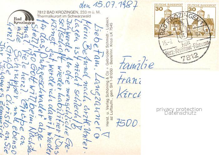 72937195 alte Postkarte Bad Krozingen Fliegeraufnahme mit Belchen postalisch gelaufen Erhaltung siehe scans [LiesaD40] KatCode: 11110008315006