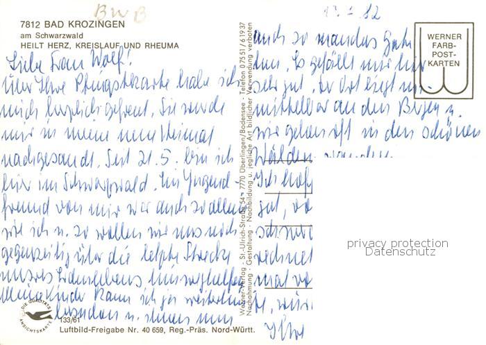 73836273 Bad Krozingen Fliegeraufnahme mit Belchenblick postalisch nicht gelaufen Erhaltung siehe scans [WerneD78] KatCode: 11110008315006