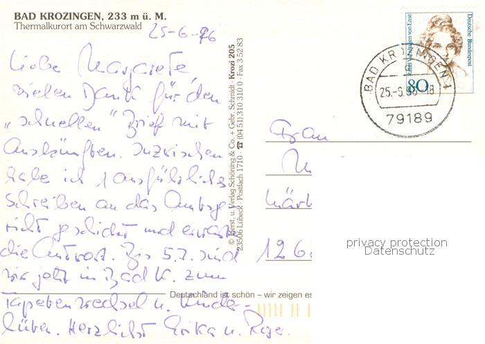 73782525 alte Postkarte Bad Krozingen Fliegeraufnahme Thermalkurort Gesamtansicht postalisch gelaufen Erhaltung siehe scans [LiesaD40] KatCode: 11110008315006