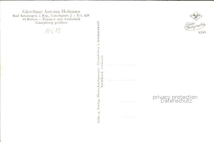 31705839 Bad Krozingen Gaestehaus Hofmann postalisch nicht gelaufen Erhaltung siehe scans KatCode: 11110008315006