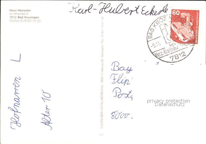 72470713 alte Postkarte Bad Krozingen Haus Henseler postalisch gelaufen Erhaltung siehe scans KatCode: 11110008315006