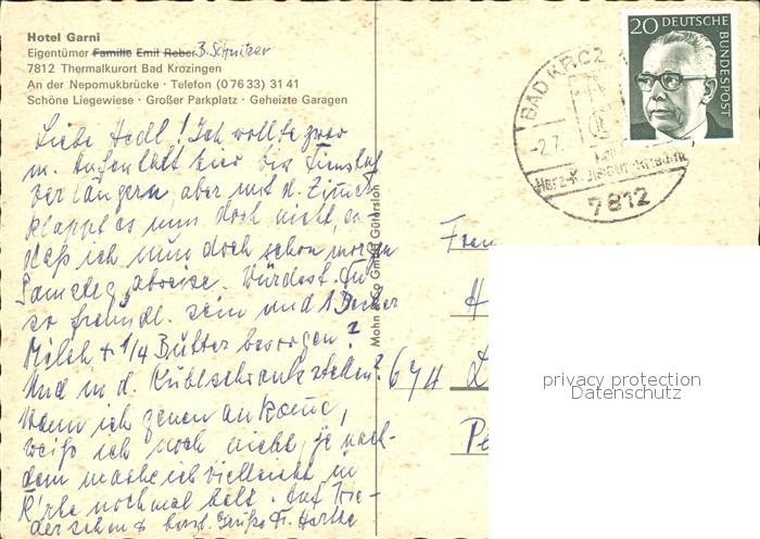 72470711 alte Postkarte Bad Krozingen Hotel Garni Thermalkurort postalisch gelaufen Erhaltung siehe scans KatCode: 11110008315006