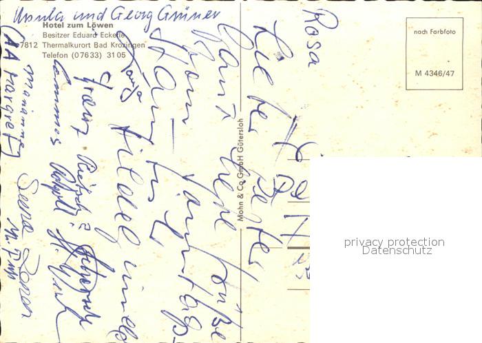 71830567 Bad Krozingen Hotel zum Loewen postalisch nicht gelaufen Erhaltung siehe scans KatCode: 11110008315006