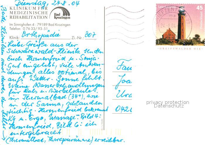 73026189 alte Postkarte Bad Krozingen Klinikum fuer Medizinische Rehabilitation postalisch gelaufen Erhaltung siehe scans [PaolaD17] KatCode: 11110008315006