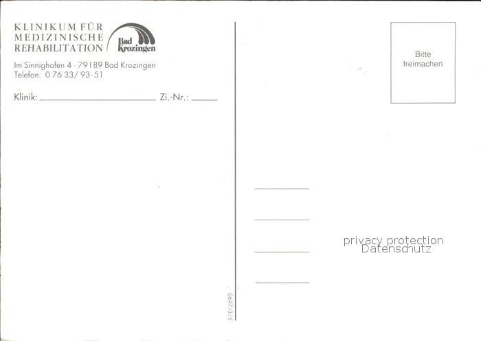 Bad Krozingen Klinikum fuer medizinische Rehabilitation postalisch nicht gelaufen Erhaltung siehe scans