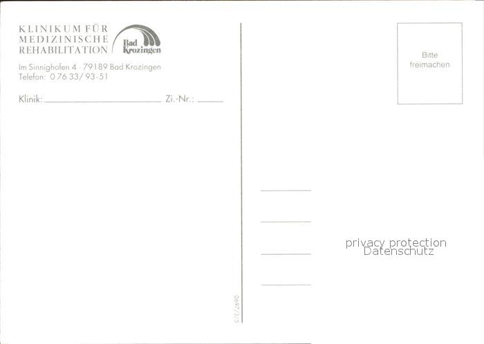 72393596 Bad Krozingen Klinikum fuer medizinische Rehabilitation postalisch nicht gelaufen Erhaltung siehe scans KatCode: 11110008315006