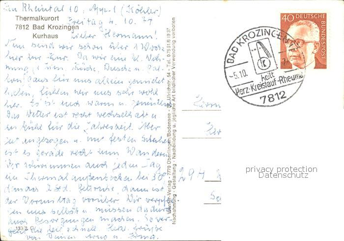 72430664 alte Postkarte Bad Krozingen Kurhaus Thermalkurort postalisch gelaufen Erhaltung siehe scans KatCode: 11110008315006