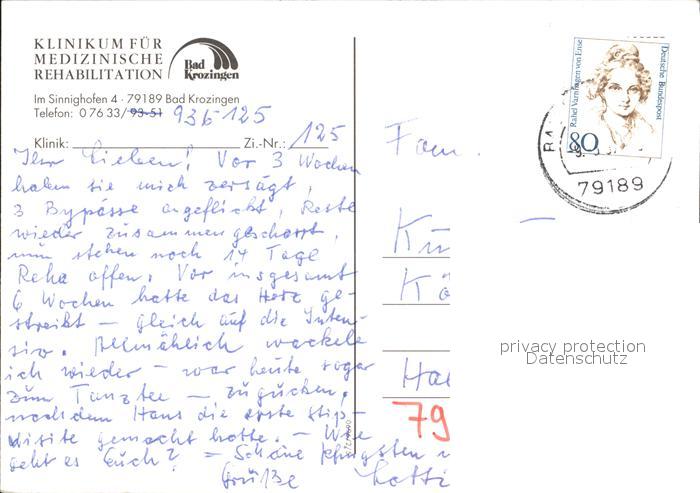 72253657 alte Postkarte Bad Krozingen Kurklinik Ortspartie Kurpark Schwimmbad postalisch gelaufen Erhaltung siehe scans KatCode: 11110008315006