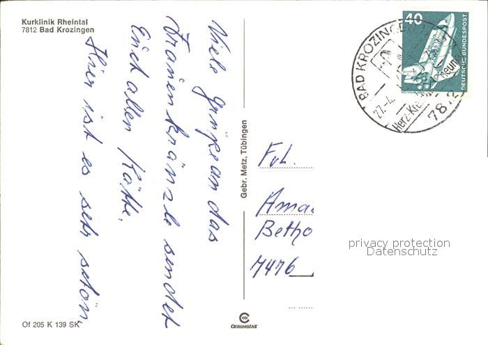 72460746 alte Postkarte Bad Krozingen Kurklinik Rheintal postalisch gelaufen Erhaltung siehe scans KatCode: 11110008315006