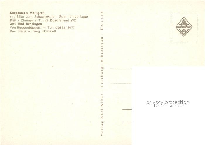 73846005 Bad Krozingen Kurpension Markgraf Gastraeume Treppenaufgang postalisch nicht gelaufen Erhaltung siehe scans [FriedD77] KatCode: 11110008315006
