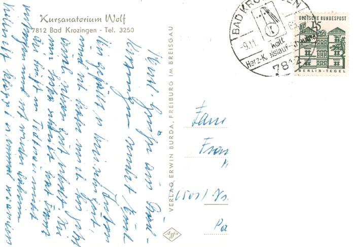 73904957 alte Postkarte Bad Krozingen Kursanatorium Wolf Gastraeume Panorama postalisch gelaufen Erhaltung siehe scans [WerneD78] KatCode: 11110008315006